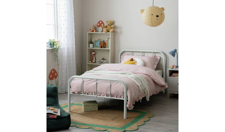 Single White Metal Bed Frame / White Metal Crystal Finial Bed Day Bed Single Double Kingsize Or Trundle : Ideal for kids' and guest rooms, this metal daybed provides an additional seating or sleeping space for guests and family.. Shop best deals on single bed frames and buy yours from australia's largest online retailer. This bed frame accommodates a standard twin size mattress and foundation or box spring (sold separately). For the striking master bedroom or a chic space for guests to rest, the minimalist metal bed is a fresh interpretation of a classic design. Check out our full range at www.crazypricebeds.com. Twin twin lull metal bed frame dimensions:38.5 x 74.5 x 14 sku: